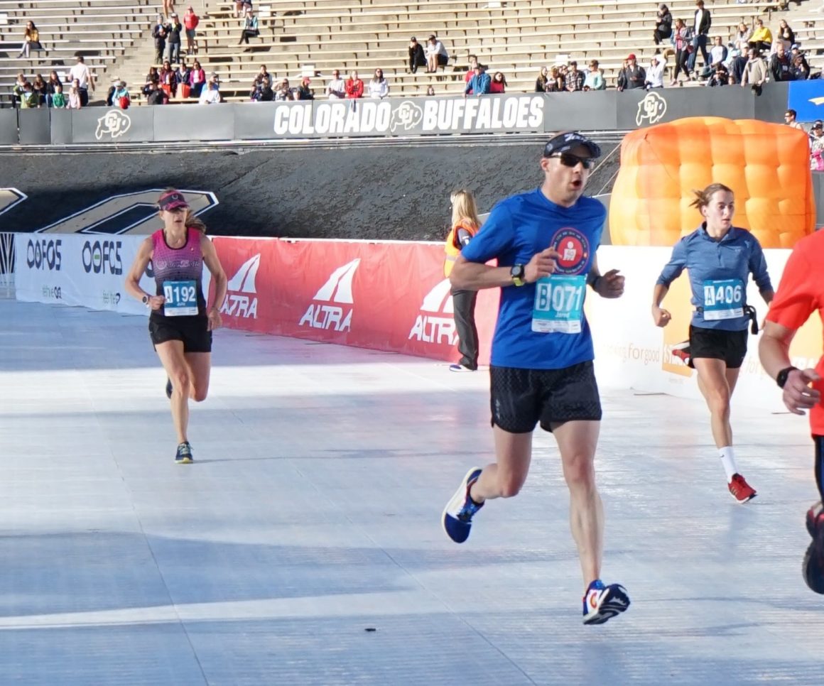 There is bit of a hill that climbs up towards Folsom Field, this took a lot out of me. There was a woman by the paramedics, dizzy trying to finish the race, but they wouldn’t let her go. The were vomit piles all over before the entrance. Clearly people were pushing it.