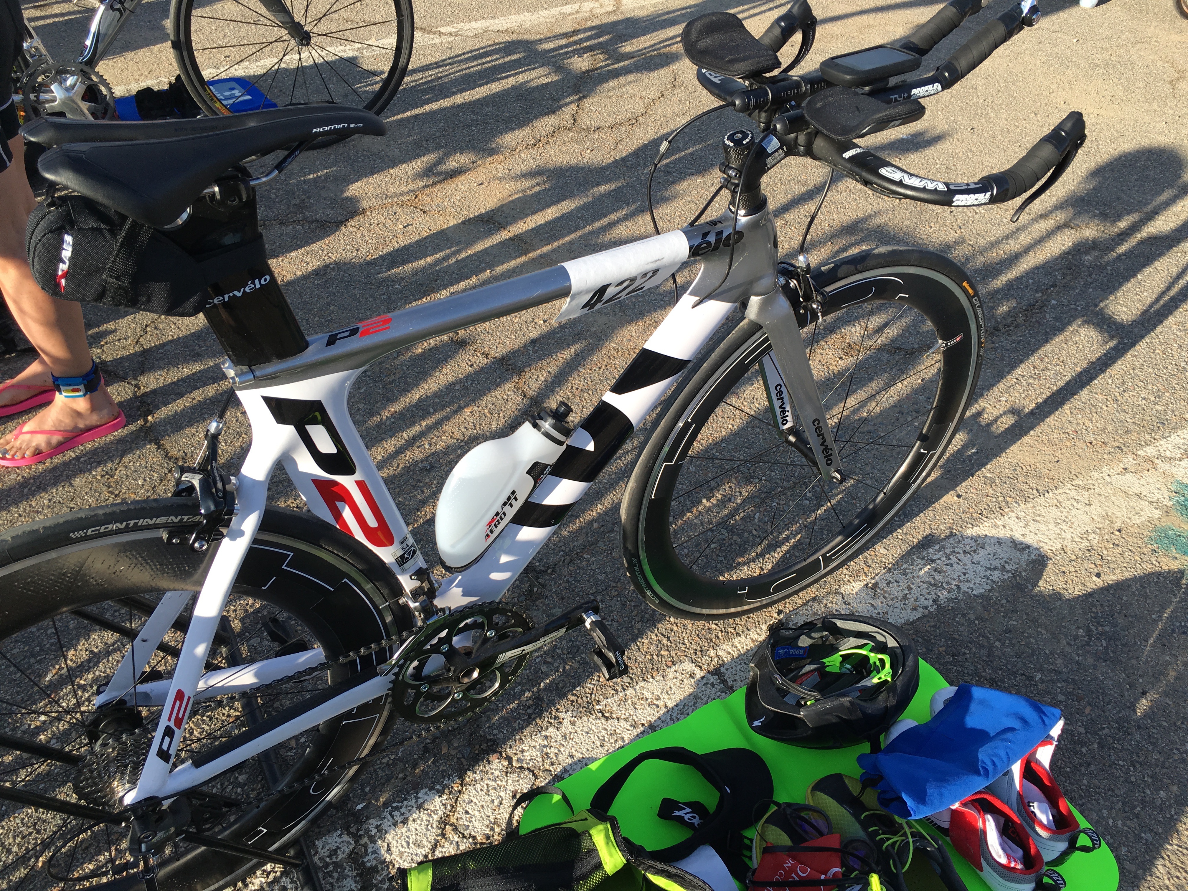 The bike portion went well. It felt great out there and I was passing just about everyone. There was no wind and the temperature was perfect. I was flying and felt so confident. My heart rate was a little high, but I told myself this is just a sprint so I should go hard. The start of the course was a little crowded, but it thinned out nicely once I got further in. Towards the end of the course I was just about the only one out there. I heard a noise from behind me and looked. A woman on a really nice P5 flew by me. I knew there was no way I could keep up with her.