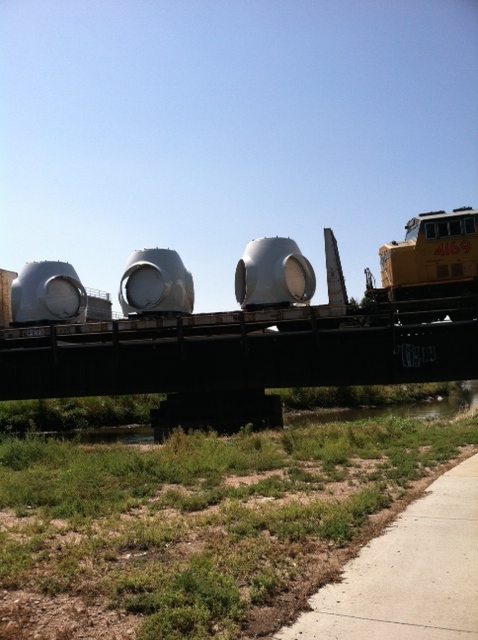 Along our bike rides I always see things I wouldn’t normally see in my car. I feel like I pay even more attention to my surroundings while I’m on the bike because I’m not inside and protected by my car. Any and all elements can affect me. As we rode along the Platte, a train with these unknown objects loaded on it choo-choo’d along. Jared and I tried to figure out what they could have been. Jared guessed they were put down manholes. They looked like legos to me. My suggestion: If you want to ride without pedestrian disturbance or running over shards of glass, avoid the Platte. I enjoy it, but there is always so many people you have to duck, dive, and dodge, and I seem to get a lot of flats going through Denver. It didn’t help we went on Labor Day weekend either.