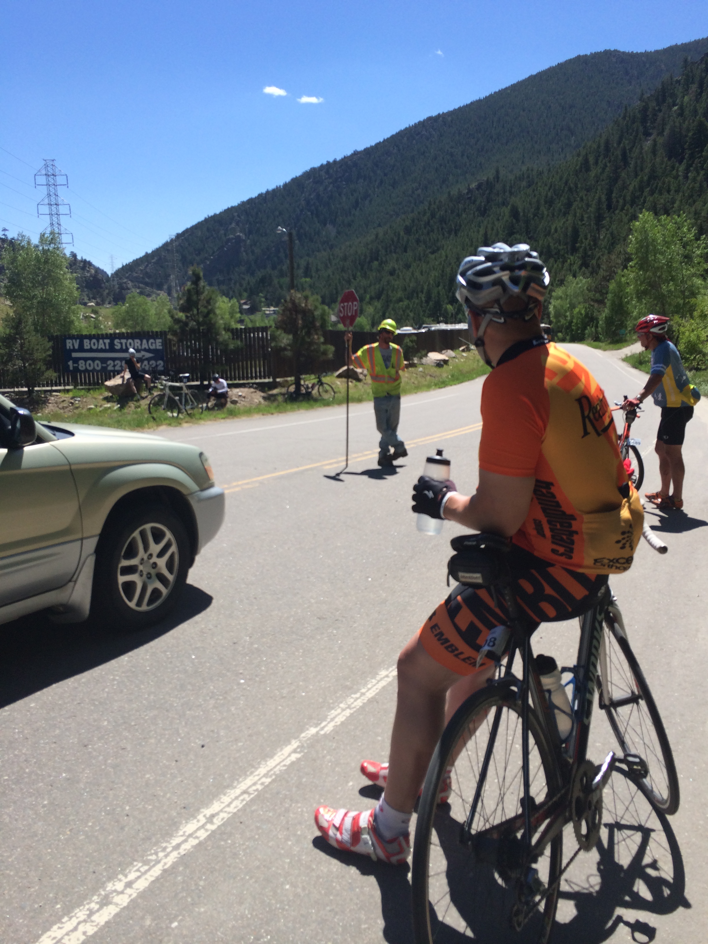 Well somehow my timing was off. They were blasting the twin tunnels outside of Idaho Springs on I-70. They stopped the bike traffic for about 20 minutes. Not only was this a bummer, but it totally cooled my legs off. I had a few more climbs to get through and I had been so pumped I was worried I’d stiffen up. As we waiting it started to fill up, more and more cyclist were stacking up. I was lucky and towards the front of the pack. I really wanted to get ahead so I didn’t have the traffic.