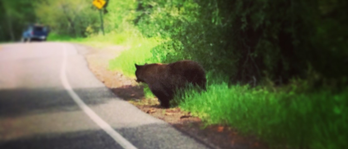 I started snapping pictures, which didn’t turn out all that well. As I approved the bear the looked at me. It was a narrow road and I hadn’t thought about what could happen in this situation. He stepped back, growled shooing his teeth as I passed by. I think I scarred him a little to be honest. I figured I could have out run him on my bike, but the thought didn’t even hit me until I had passed. But how cool, to see a bear on the side of the road.