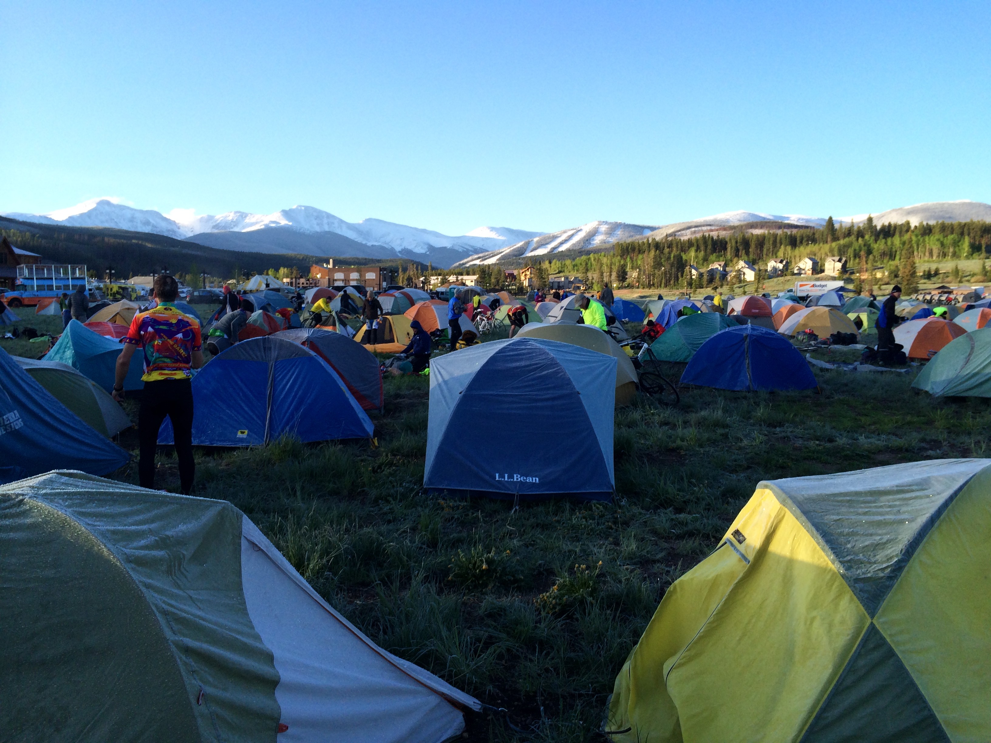 Day two started out a little frozen, literally. I awoke to a frozen tent and a frozen bike. It was cold, really cold and I didn’t want to get out of my sleeping bag. I knew I had to get a jump on the day though. It was going to be a long one, over 90 miles to ride. The night before we got hit with a ton of rain and snow in the upper elevations. The pass I had come down got three inches of snow, and the Winter Park Slopes looked like they could be skied on.